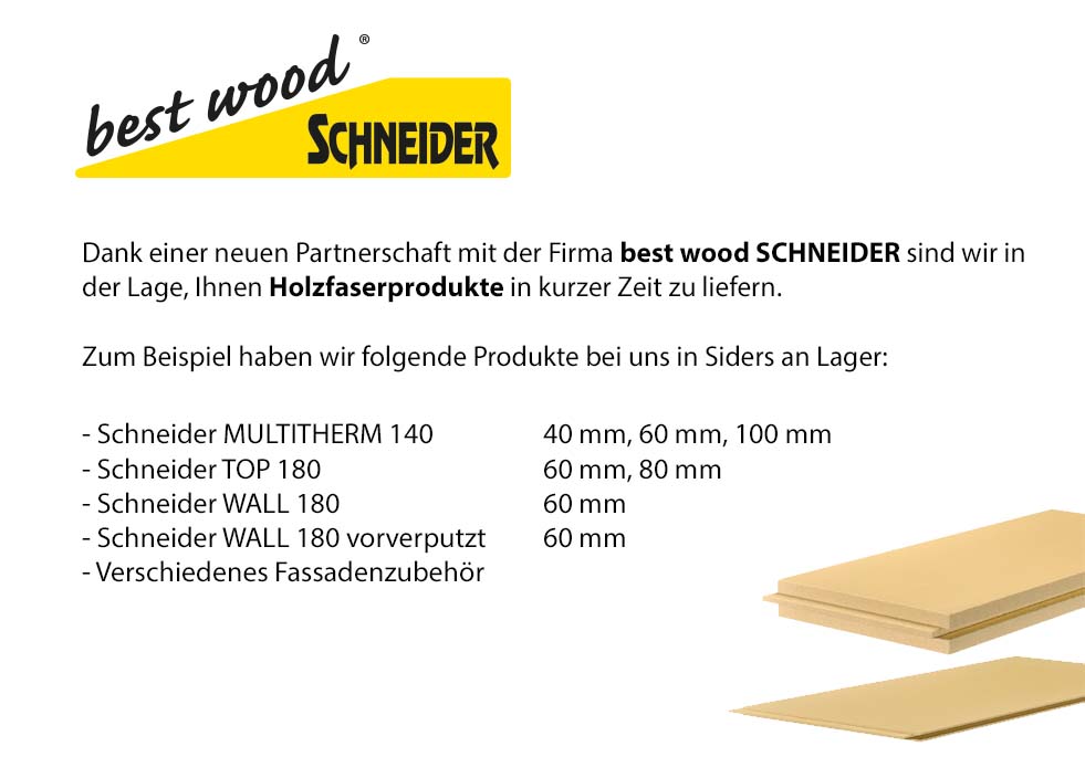 Neue Partnerschaft mit der Firma best wood SCHNEIDER